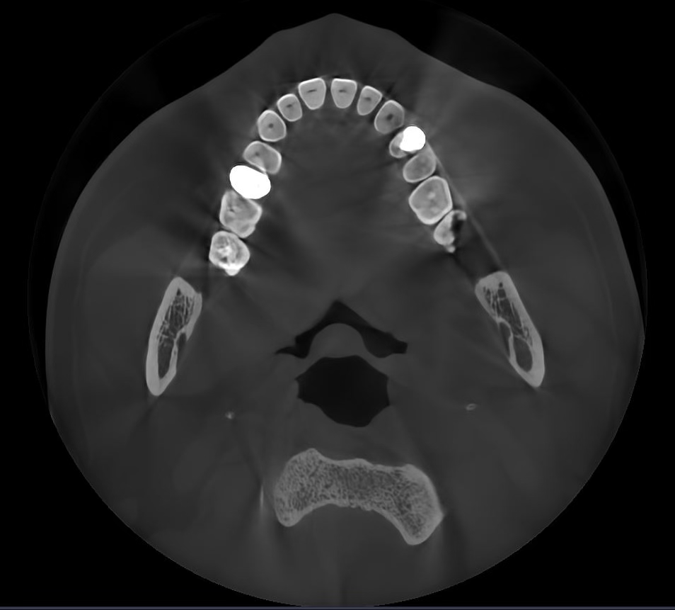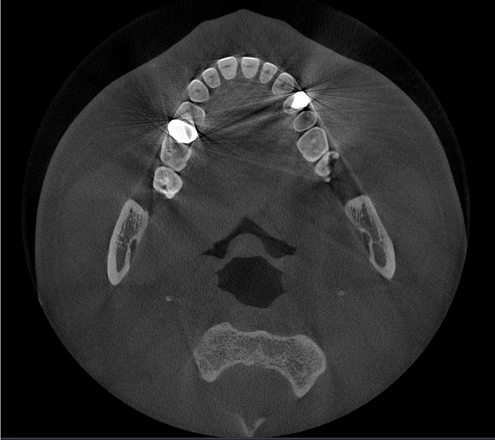 Borra los artefactos metálicos y restaura con precisión las estructuras dentales, las coronas metálicas y los implantes basados en principios matemáticos.